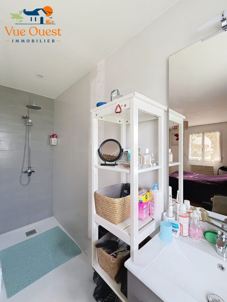 Le diagnostic électrique n’a révélé aucune anomalie. Les nombreuses huisseries des parties habitables (fenêtres et portes), qui apportent luminosité et confort d’accès, ont été remplacées. La cuisine aménagée et équipée a été réalisée par un fournisseur local (avec un lave-vaisselle à mi-hauteur bien pratique !) et la maison dispose de deux salles d’eau récentes au rez-de-chaussée, dont une dans la grande chambre de près de 18 m², également de plain-pied, ainsi que d’un WC indépendant. Sa grande buanderie, isolée et située de plain-pied, offre de beaux volumes pour créer de nombreux espaces de rangement.